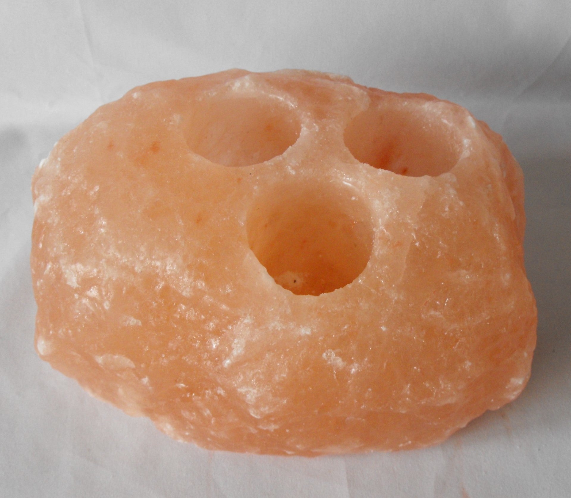 Zoutkristal waxinelichthouder. (3 gats) (nr:1)