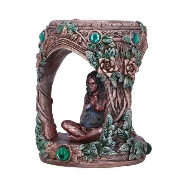 Deze theelichthouder van Moeder Aarde is gegoten in de beste hars voordat het vakkundig wordt afgewerkt in brons en vakkundig met de hand beschilderd en wordt met kaarsje geleverd.
