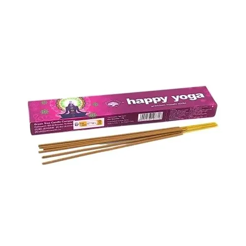 Wierook Happy Yoga is een heerlijke wierook geur van masala. De geur komt voort uit de natuurlijke ingrediënten die men gebruikt. Gemaakt van de fijnste kruiden, bloemen extracten, exotische oliën en andere natuurlijke ingrediënten. Zoals kruiden, harsen en Indiase specerijen (masala) deze zijn zorgvuldig geselecteerd en vakkundig gemengd voor hun positieve invloed. Een uitzonderlijke wierook die het product is van de bijzondere kunst van het traditionele Indiase wierook maken.