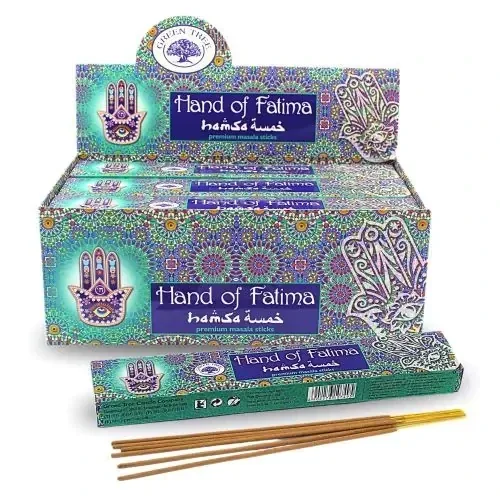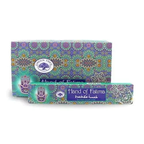 Hand of Fátima is een heerlijke wierook geur van masala van het merk Green Tree. Geurbeleving: Ideale wierook voor het mediteren. Het geeft je een volkomen ontspannen gevoel. Hars, hout en bloemen komen als eerste naar boven. De Hand van Fátima herken je aan de kruidige muskus aroma. Deze wierook is speciaal samengesteld voor de goddelijke geest en bedoeld om meditatie te ondersteunen. Haar basis zijn heerlijke oosterse kruiden, harsen en oliën.