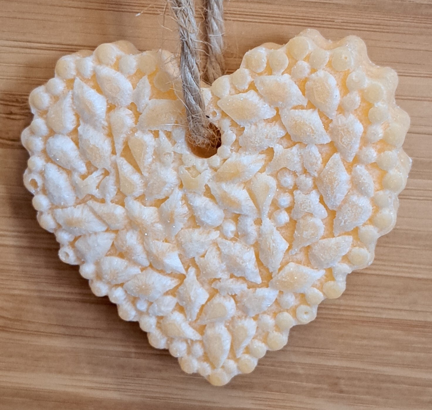 Deze geurende “Heart” hangers zijn met de hand gemaakt van hars en etherische oliën, waardoor ze een warme en aardse geur hebben die doet denken aan amber en hout en daardoor kunnen ze soms een klein beetje verschillen van elkaar qua vorm, kleur en/of gewicht. De “Heart” hangers geven langzaam geur af, waardoor je lang kunt genieten van hun heerlijke aroma. Deze geur is rustgevend en warm, waardoor ze perfect zijn voor het creëren van een ontspannen en gezellige sfeer in huis.