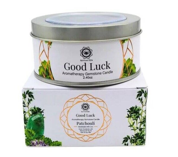 Maak kennis met onze Gemstone Aromatherapy Candle “Good Luck” van Green Tree Spiritual Gifts. Deze kaars is handgemaakt, heeft een katoenen lont en heeft circa 10 - 12 branduren. De kaars weegt 70 gram, heeft een afmeting van 9x4x9 cm en is gemaakt van hoogwaardige Palm- en sojawas.