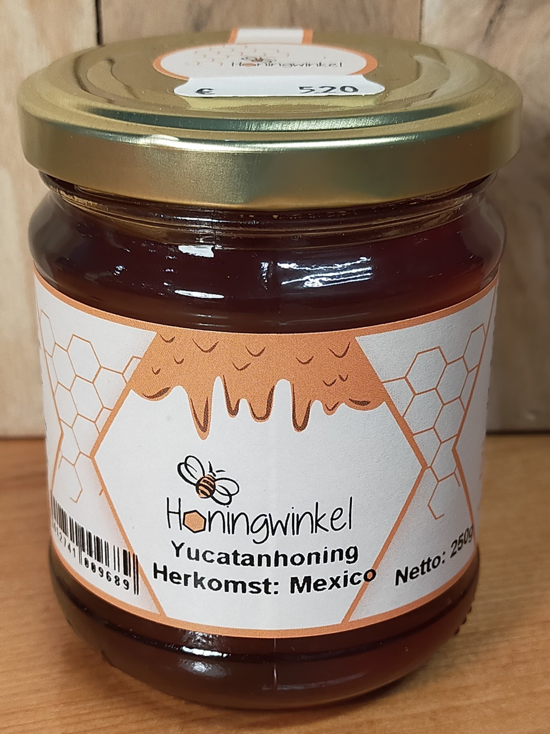 Yucatánhoning is een natuurlijke honingsoort die wordt geproduceerd door bijen die zich voeden met de nectar van bloemen die gedijen in de weelderige jungles en natuurreservaten van Yucatán, Mexico. De regio staat bekend om zijn biodiversiteit en unieke flora, wat resulteert in een honing met een karakteristieke smaak en aroma. Yucatánhoning heeft meestal een lichte amberkleur en staat bekend om zijn milde, zoete smaak.