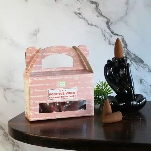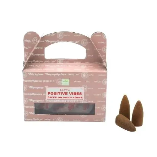Deze terugstroom wierookkegels werken rustgevend voor lichaam en geest. Positive Vibes is een traditionele, Indiase geur met een dromerig en zoet aroma. Positive Vibes is erg geschikt om bij te mediteren, het helpt bij ontspannen, om zo tot jezelf te komen. Deze wierook heeft een zoete middelsterke geur en daarnaast brengt de geur veel sfeer in huis!