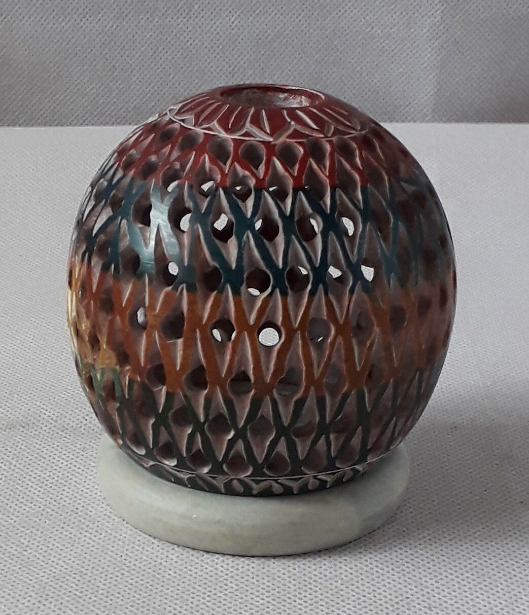 Een mooie met de hand gemaakte en beschilderde theelichthouder van speksteen.