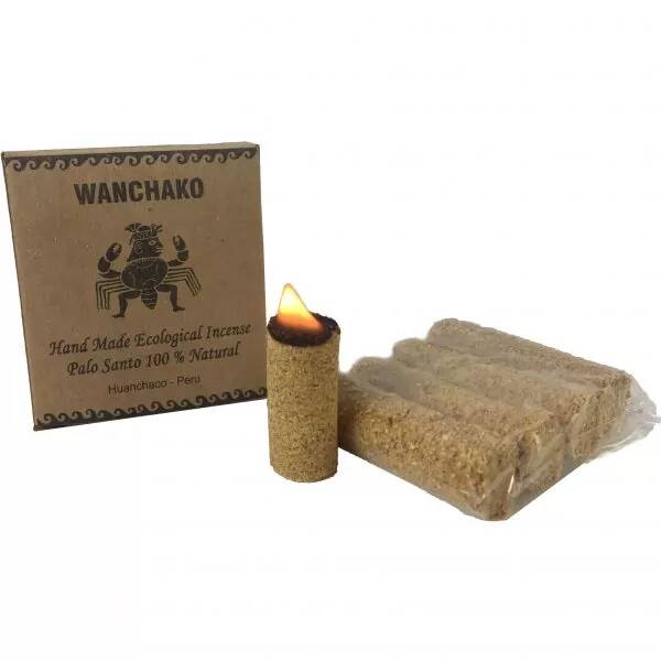 Wanchako wierook is gemaakt van 100% natuurlijk Palo Santo hout en 7 verschillende kruiden uit het Andesgebergte: Rozemarijn, Muña, Tijm, Wiracoa, Wallpa Chaqui, Romerillo, Eucalyptus.