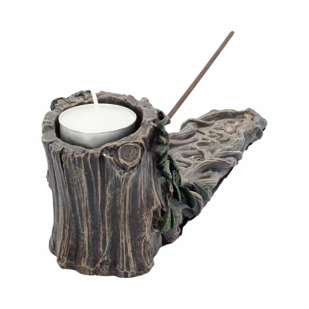 Een wierookstokje kan in de mond van de Tree Man worden geplaatst, waar het zijn aroma afgeeft. Het ontwerp is zeer ingewikkeld en vertoont takken die ineengestrengeld zijn om de lengte van de houder te vormen. Zijn gezicht is gevormd uit de schors en heeft kleine blaadjes die zijn wenkbrauwen en gezichtshaar vormen, evenals ruimte in de bovenkant van zijn hoofd om een klein theelichtje te plaatsen. Gegoten in hoogwaardige hars voordat het zorgvuldig met de hand wordt geverfd, brengt dit stuk een beetje natuur in uw huis.
