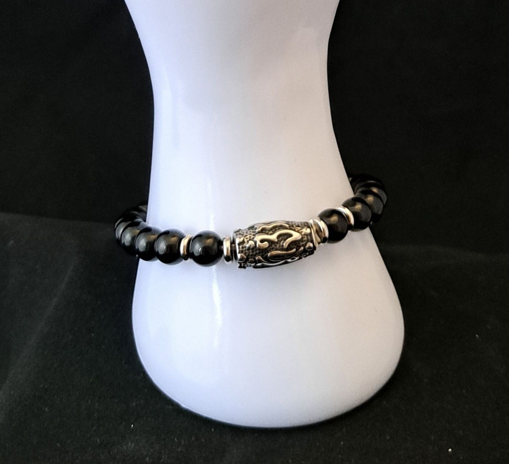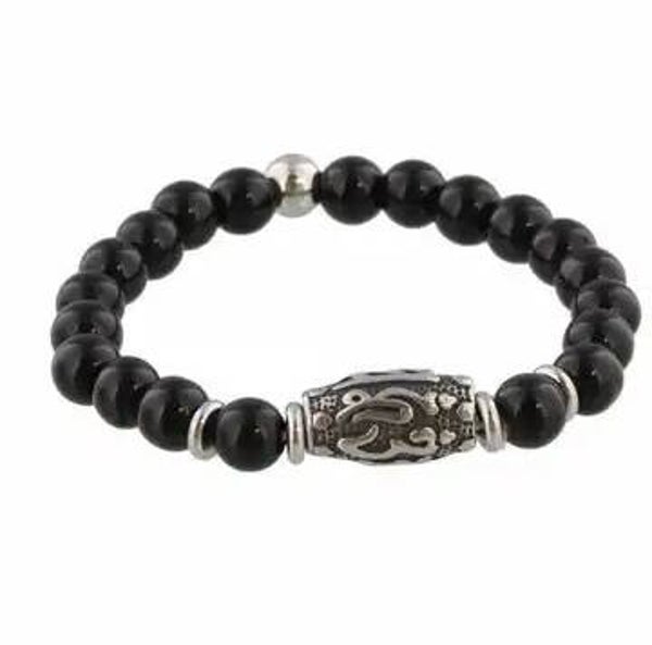 Het betreft hier een elastische armband met zwarte toermalijn kralen.