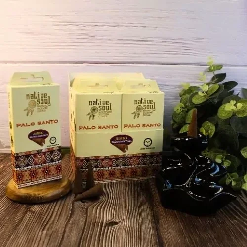Palo Santo of 'Heilig Hout' wordt gebruikt om negatieve energieën te reinigen en lichaam en ziel te genezen. Deze jumbo Palo Santo Native Soul backflow kegels zijn perfect met elkaar vermengd om een kalmerende sfeer te creëren en tegelijkertijd het evenwicht in geest en ziel te herstellen. Deze kegels hebben een klein gaatje in de bodem dat de rook naar beneden trekt om een watervaleffect te creëren bij gebruik met terugstroombranders..