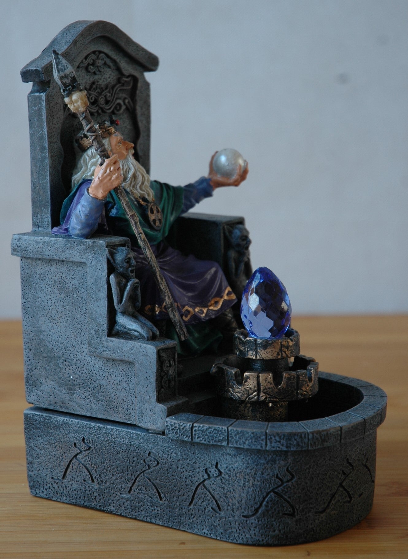 Decoratieve kamerfontein. Erg leuk voor bijvoorbeeld op de kinderkamer. Deze kamerfontein heeft een vrijwel geruisloze pomp en is uitsluiten bedoelt voor binnengebruik. De fontein is gemaakt van polyresin en werkt op twee AA batterijen (Let Op!! deze zijn niet meegeleverd).