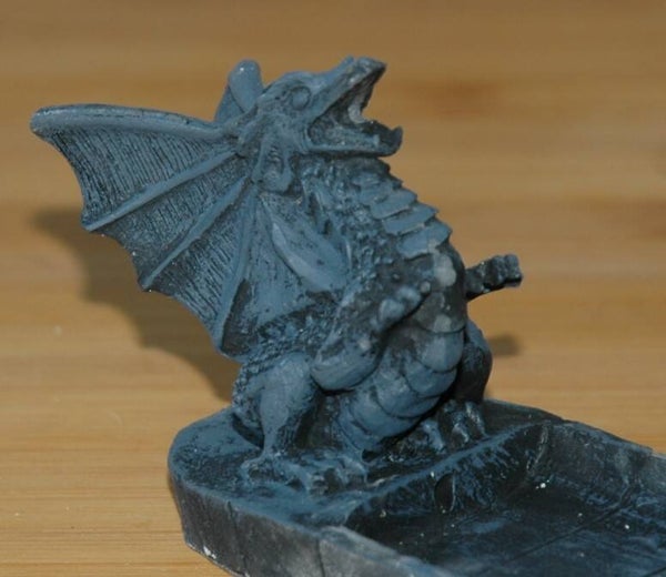 Betoverende wierookhouder met Draak. Aan het begin zit een zwarte draak die roept naar de maan. Een wierookstokje kan in een gat worden geplaatst dat net onder de draak zit, waar het met plezier en veilig zijn prachtige aroma vrijgeeft. Gegoten in hoogwaardige hars voordat het zorgvuldig met de hand wordt geverfd, brengt dit stuk een beetje duisternis.