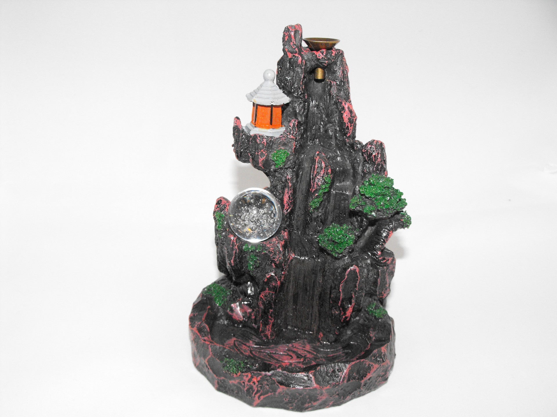 Wanneer de kegel wordt aangestoken kringelt de rook van de kegel in een betoverend watervaleffect naar beneden.